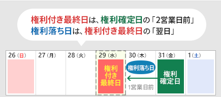 権利確定日の2営業日前の「権利付最終日」までに株を購入すると、