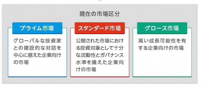 東京証券取引所はプライム市場、スタンダード市場、グロース市場とあり